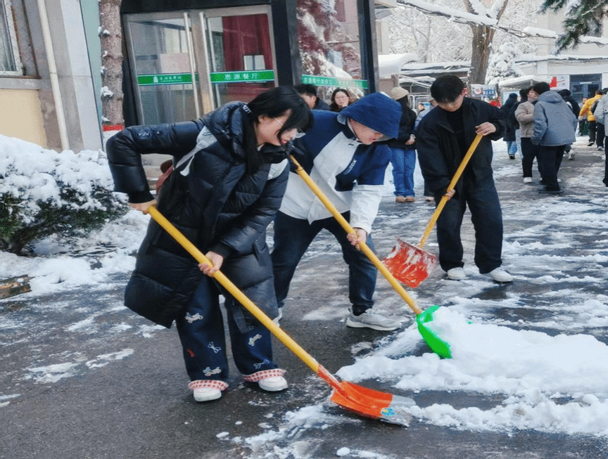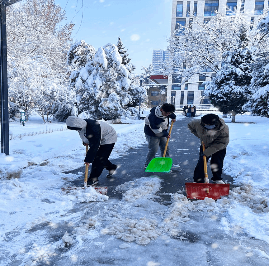 活动中,同学们不畏严寒、分工协作,手持铁锹、扫帚、推雪板等工具,对劳动责任区及校园主干道积雪冰层进行集中清理。大家干劲十足、配合默契,用实际行动清扫出一条条安全通畅的道路,充分展现了口腔学子勇于担当、乐于奉献的青春风貌。