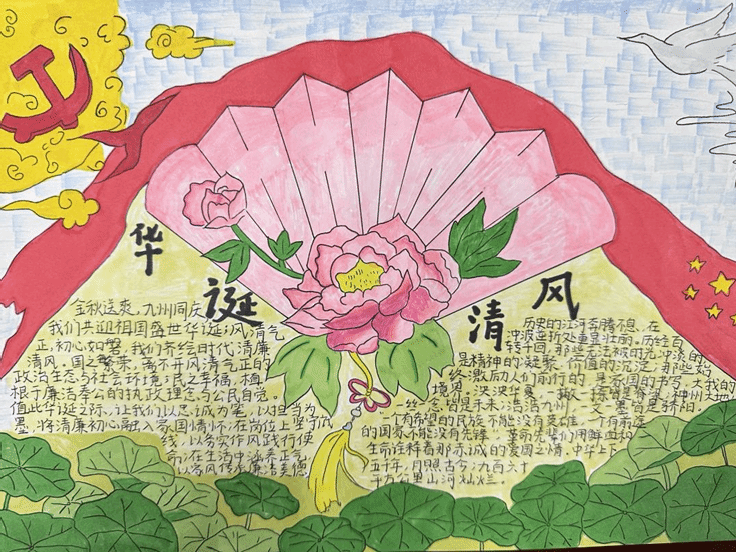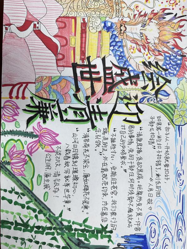 为庆祝中华人民共和国成立76周年,弘扬爱国主义精神,深入推进廉洁文化建设,口腔医学系学生会组织开展了“庆盛世华诞,绘清廉新风”主题手抄报作品征集活动。