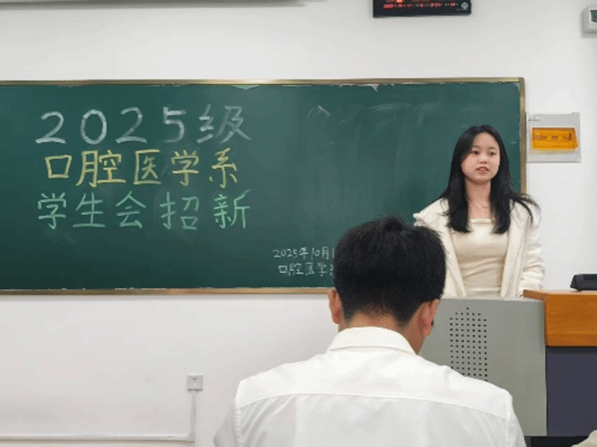 10月12日,口腔医学系学生会2025年招新活动在五龙校区素问楼103教室顺利开展,并圆满落下帷幕。本次招新围绕“汇聚口腔新生力量,共筑服务新平台”展开,通过宣讲介绍、现场咨询、面试考核等环节,从众多报名同学中选拔出一批热情高涨、责任心强且对口腔医学系学生工作有想法的新生力量。