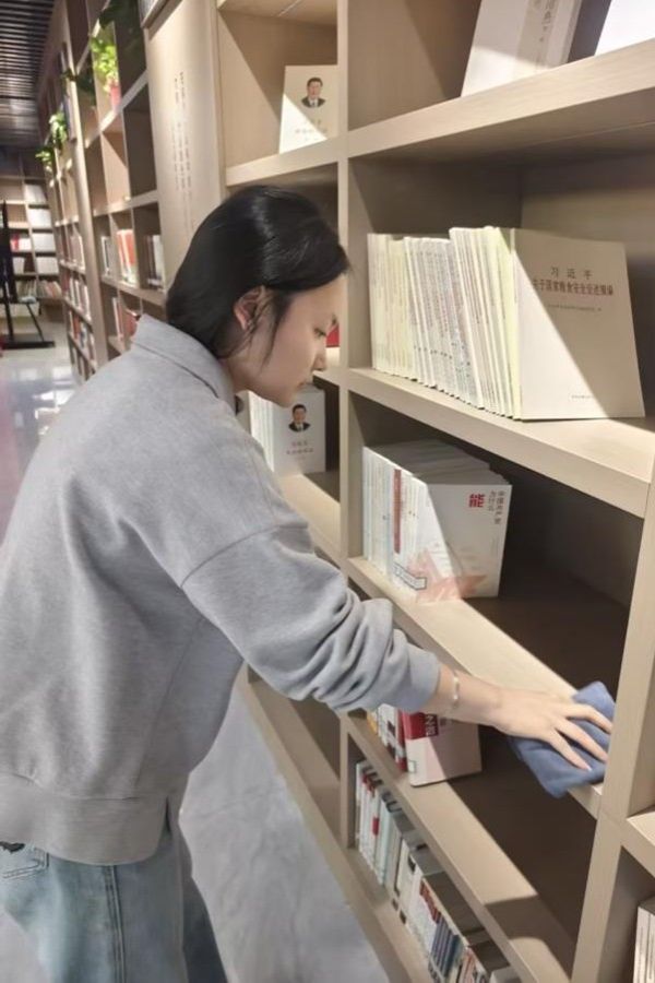 活动伊始,学生党员和入党积极分子准时集合,在明确分工后迅速投入清扫工作。大家手持扫帚、抹布、水桶等工具,分工协作、有条不紊。通过清扫书架缝隙与地面角落的灰尘,擦拭书桌、座椅,对书房内的书籍进行整理归类,为师生们营造了干净舒适的阅读环境。